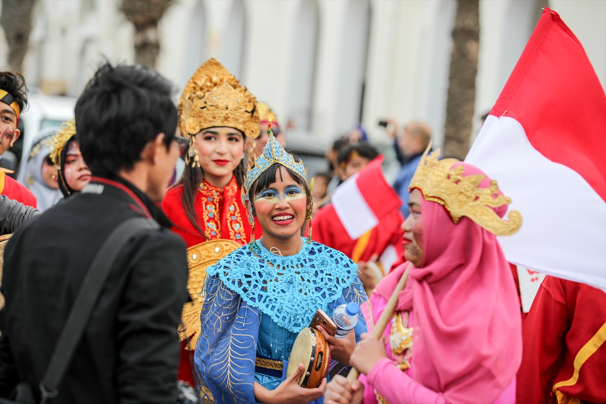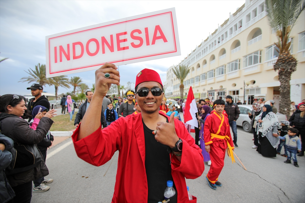 5th Hammamet International Festival 2018 March 25, 2018 HAMMAMET, TUNISIA: A woman with a traditional costume gestures during the 5th Hammamet International Festival.
