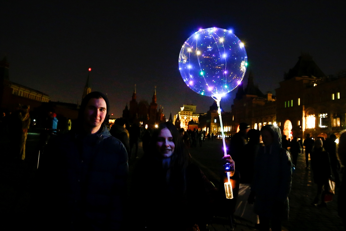 MOSCOW, RUSSIA: GUM Department Store (Glavny Universalny Magazin) is seen before lights were turned off to mark Earth Hour in Moscow, Russia on March 24, 2018. This is an annual lights-off environmental event organised by the WWF [World Wide Fund for Nature] to raise awareness of climate change.