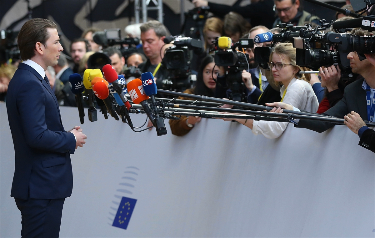 EU Leaders summit in Brussels March 23, 2018 BRUSSELS, BELGIUM: Greek Prime Minister Alexis Tsipras speaks to media ahead of the European leaders summit at the European Council in Brussels.