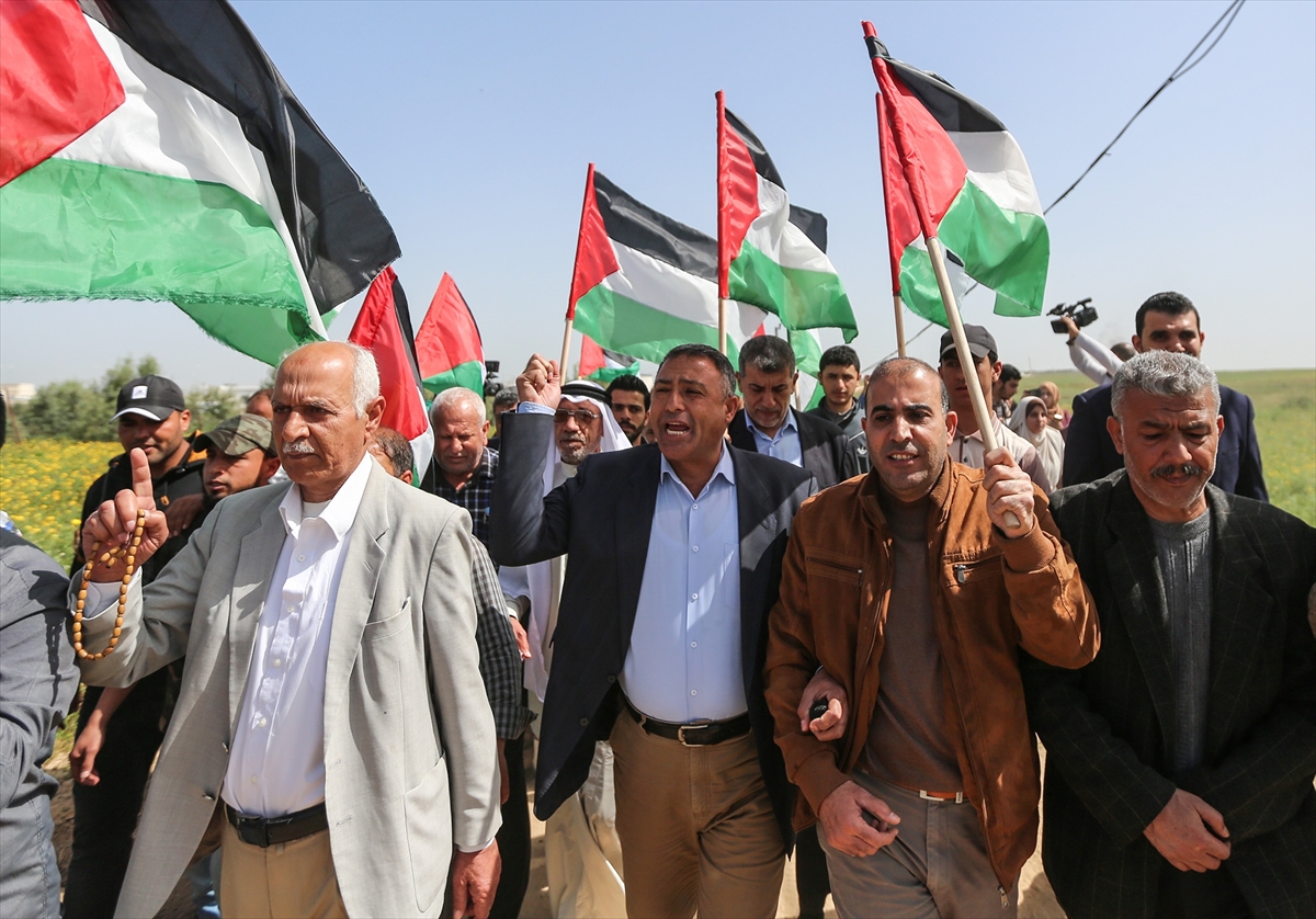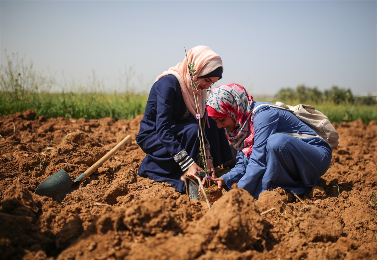 Palestinians plant sapling at Gaza border March 21, 2018 GAZA CITY, GAZA – MARCH 20 : Women plant saplings at the Gaza border within a protest against the Israeli blockade on March 20, 2018 in Gaza City, Gaza.