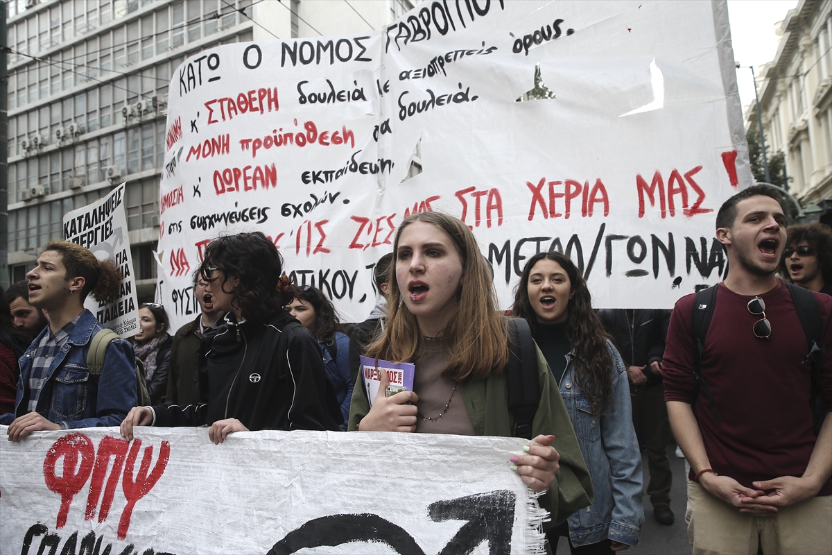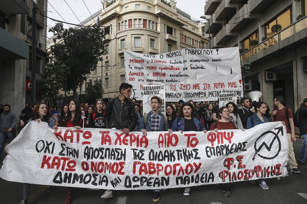 Students rally in Athens March 23, 2018 ATHENS, GREECE: Students rally against education reforms in Athens, Greece on March 22, 2018. Approximately 500 students gathered in front of University of Athens and marched to the Syntagma Square.